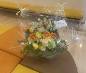 スタッフから元気のでる ビタミンカラー れおくんカラーの お花をいただきました。